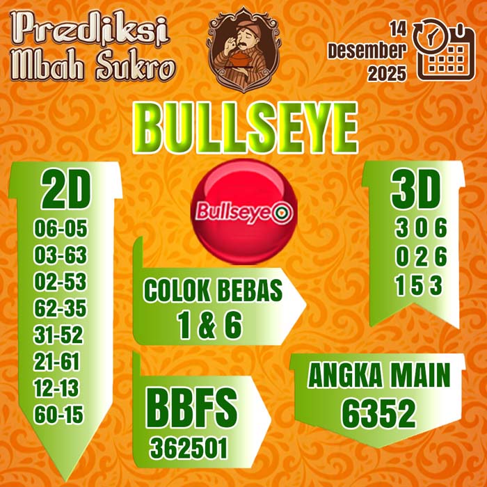 PREDIKSI MBAH SUKRO BULLSEYE MINGGU 14 DESEMBER 2025