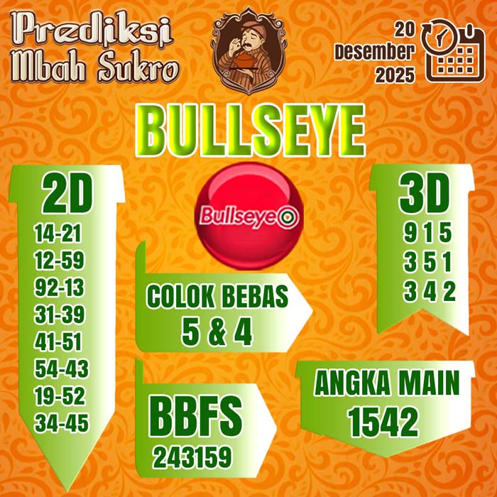 PREDIKSI MBAH SUKRO BULLSEYE SABTU 20 DESEMBER 2025