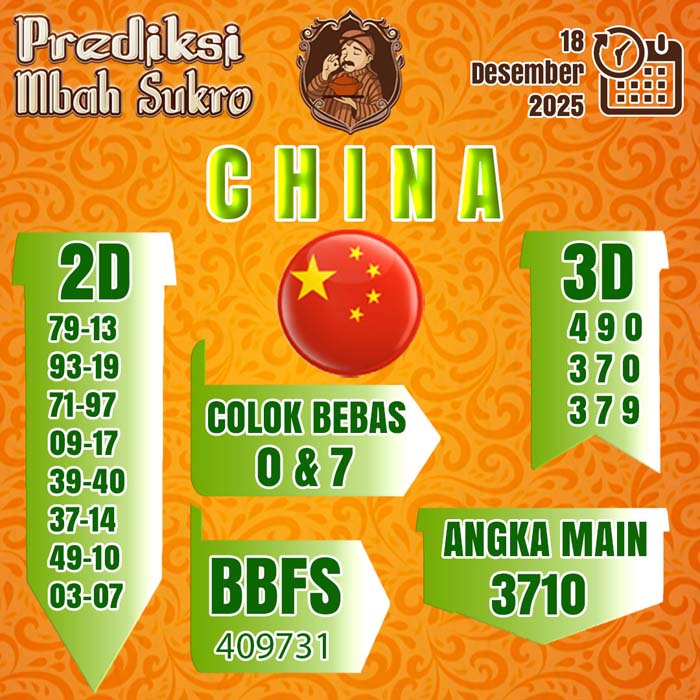 PREDIKSI MBAH SUKRO CHINA KAMIS 18 DESEMBER 2025