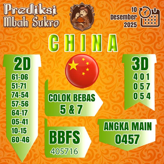 PREDIKSI MBAH SUKRO CHINA RABU 10 DESEMBER 2025