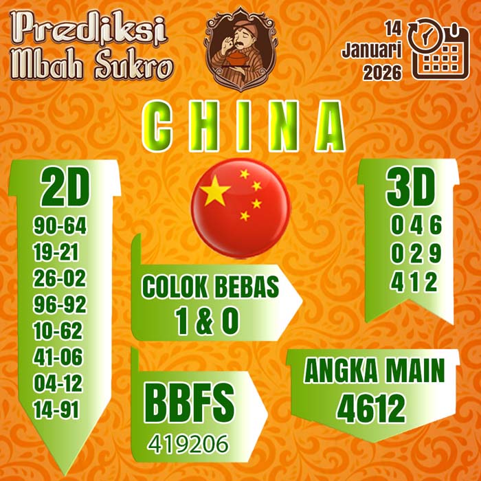 PREDIKSI MBAH SUKRO CHINA RABU 14 JANUARI 2026