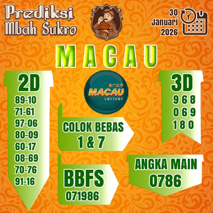 PREDIKSI MBAH SUKRO MACAU JUMAT 30 JANUARI 2026