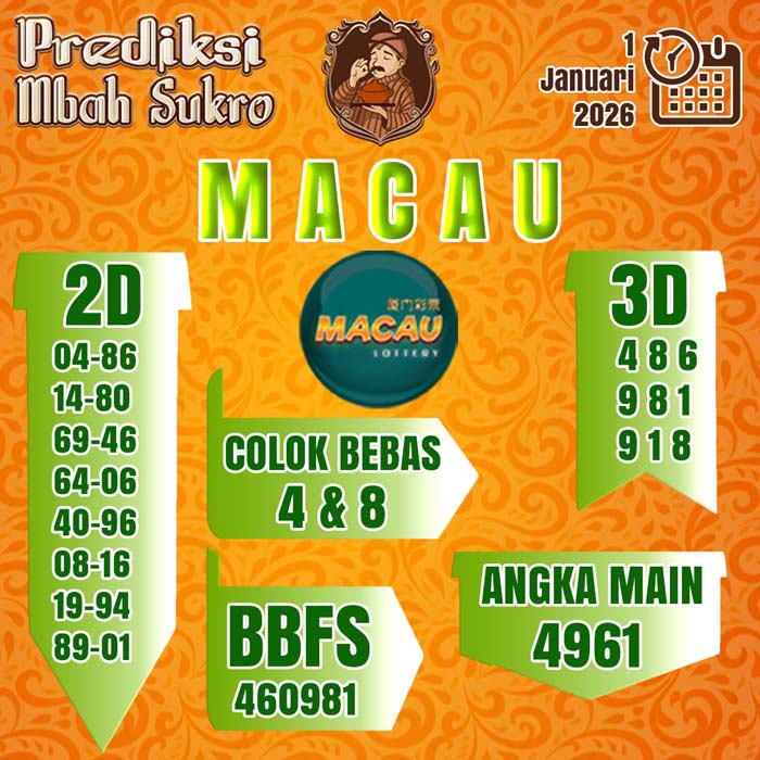 PREDIKSI MBAH SUKRO MACAU KAMIS 1 JANUARI 2026