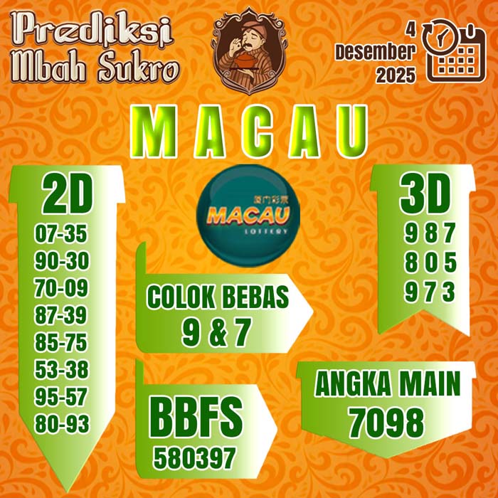 PREDIKSI MBAH SUKRO MACAU KAMIS 4 DESEMBER 2025