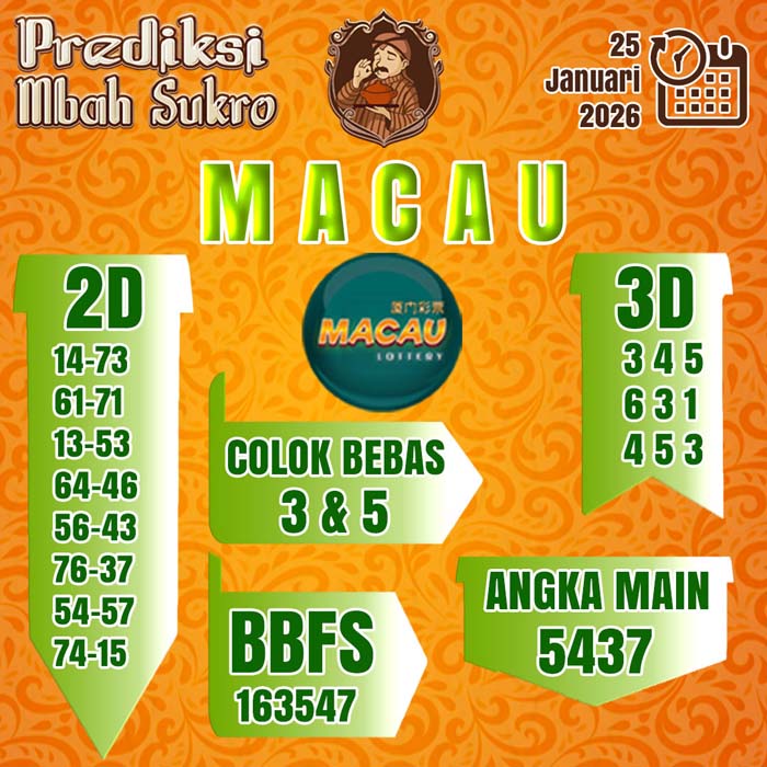 PREDIKSI MBAH SUKRO MACAU MINGGU 25 JANUARI 2026