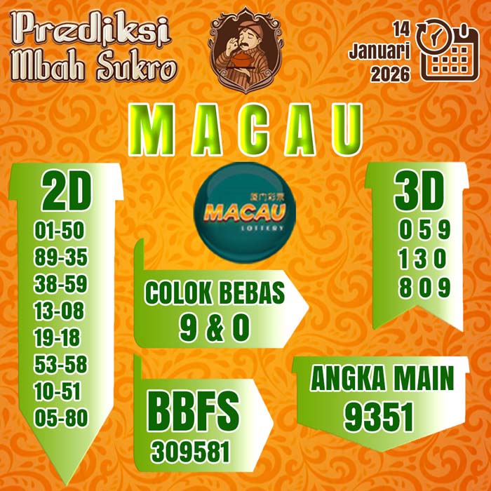 PREDIKSI MBAH SUKRO MACAU RABU 14 JANUARI 2026