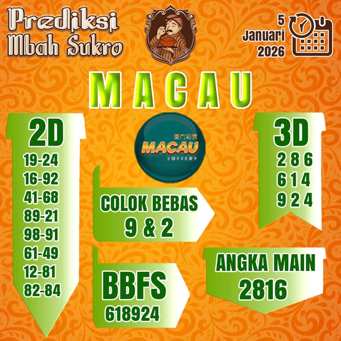 PREDIKSI MBAH SUKRO MACAU SENIN 5 JANUARI 2026