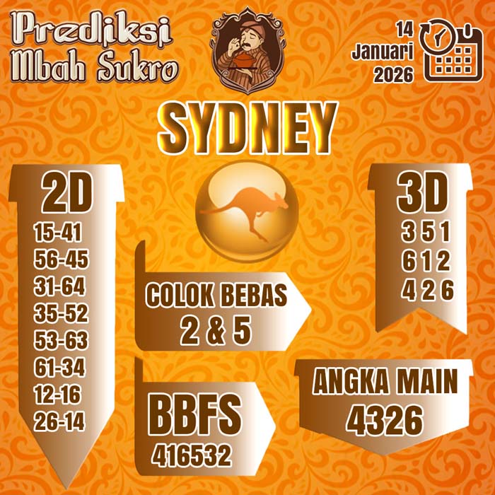 PREDIKSI MBAH SUKRO SYDNEY RABU 14 JANUARI 2026
