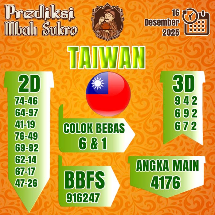 PREDIKSI MBAH SUKRO TAIWAN SELASA 16 DESEMBER 2025
