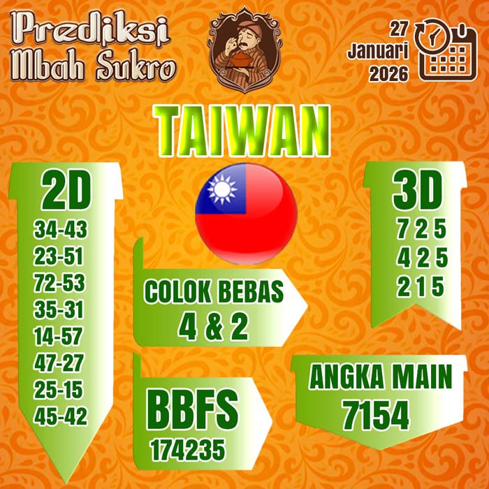 PREDIKSI MBAH SUKRO TAIWAN SELASA 27 JANUARI 2026